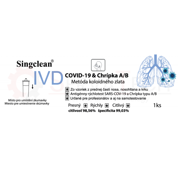 Pridať do zoznamu želaní Pridať do košíka Rýchle zobrazenie Add to compare SINGCLEAN antigénny in vitro COVID-19... 1,90 € Expirace 6. 6. 2027 Testy Singclean spoľahlivo zachytávajú aj nové mutácie DELTA, LAMBDA a OMICRON. Tento test má citlivosť 98.56%,...