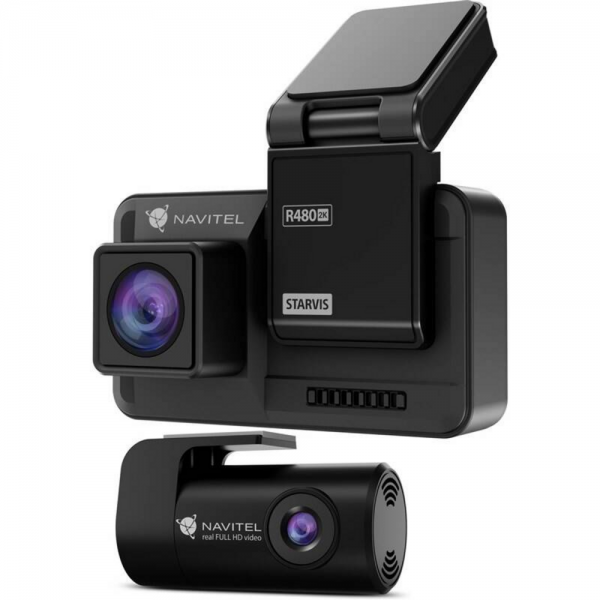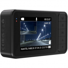 NAVITEL R480 2K je duálna autokamera s rozlíšením 2560 × 1440 px pri 30 fps, uhlom záberu 160° a svetelnosťou f/2,2. Ponúka zadnú Full HD kameru, G-senzor, WDR, cyklické nahrávanie, podporu microSDXC kariet až do 256 GB a 2" LCD displej.
