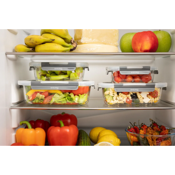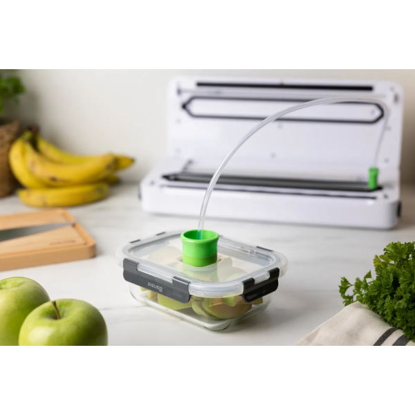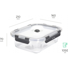 Vákuovacie dózy vyrobené z borosilikátového skla a vybavené vzduchotesným vekom využijete na skladovanie potravín, prenášanie obeda alebo zapekanie v rúre. Borosilikátové sklo je veľmi odolné a zvládne teploty až do 500 °C. V dózach bez viečka tak môžete pohodlne zapekať čokoľvek vás napadne. Potom stačí len počkať, kým jedlo vychladne, zacvaknúť viečko a zbaliť si jedlo so sebou do práce či na cesty. Plastové viečka vybavené silikónovým tesnením zacvaknete na dózu a úplne ju vzduchotesne uzavriete. Vákuovacím otvorom v strede viečka je potom možné odsať prebytočný vzduch, čím udržíte potraviny vo vnútri dlhšie čerstvé. Dózy aj s viečkami je možné umiestniť aj do mrazničky.