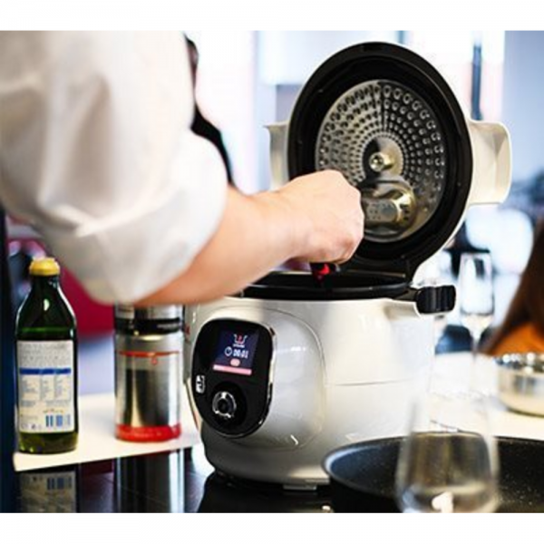 Multifunkčný hrniec Tefal Cook4Me v bielej farbe prináša rýchle a pohodlné varenie vďaka výkonu 1 600 W a objemu 6 litrov. Kombinuje tlakové varenie, varenie v pare, pečenie aj smaženie v jednom spotrebiči. Disponuje automatickými programami, displejom, časovačom, funkciou odloženého štartu aj udržiavaním teploty. Vyberateľná nádoba uľahčuje údržbu a naparovač rozširuje možnosti prípravy zdravých pokrmov.