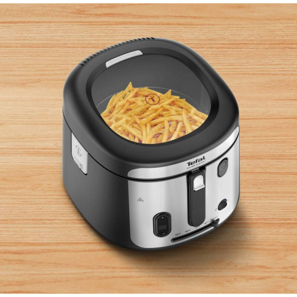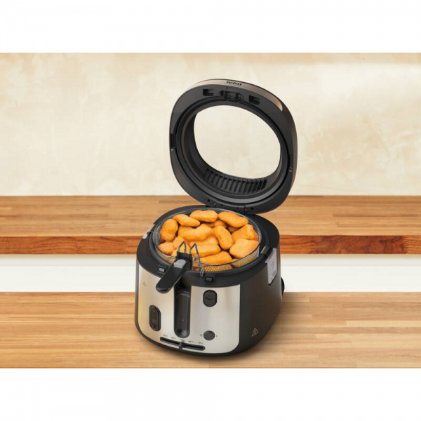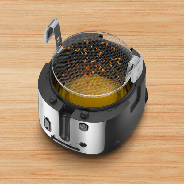 - Veľké priehľadné okienko umožňuje sledovať priebeh smaženia bez straty teploty vo vnútri fritézy.