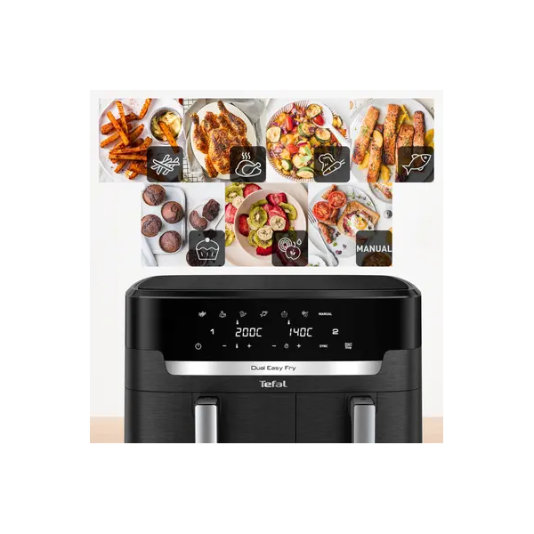 Teplovzdušná fritéza Tefal EY9428E0 Dual Easy Fry XXL s 7 programami, dvoma zásuvkami a veľkým objemom 11 l.