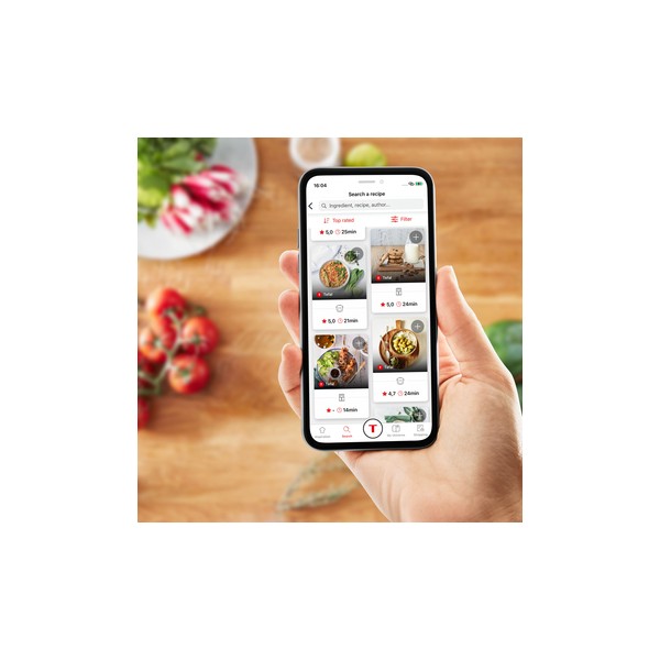 Do svojho mobilného telefónu si môžete stiahnuť aplikáciu, ktorá poradí s receptami krok za krokom a dodá inšpiráciu, keď budete premýšľať, čo nové si uvariť. Výsledok je vždy chrumkavý navonok a šťavnatý vo vnútri, takže si na svoje prídu aj najväčší fajnšmekri. Príslušenstvo fritézy môžete pohodlne umývať v umývačke riadu alebo pod tečúcou vodou v umývadle. V porovnaní s bežnou rúrou navyše spotrebujete až o 70 % menej energie (testované v roku 2024 na mrazených hranolkách), čo sa príjemne prejaví na výslednom účte.