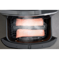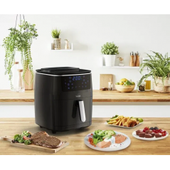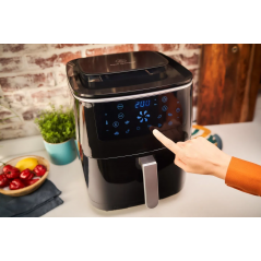 V priestrannej nádobe s objemom 6,9 l a so zabudovanou nádržkou na vodu s objemom 1,1 l ľahko pripravíte jedlo pre celú rodinu. Digitálny dotykový panel ponúka 7 automatických programov – hranolky, kurča, ryby, pizza, dezerty, zelenina a funkciu naparovania, ktoré nastavíte jediným dotykom. Okrem toho môžete všetko ovládať ručne a prispôsobiť teplotu od 80 do 200 °C a čas až na 60 minút. Príprava je rýchla, úsporná a pritom zdravá – v porovnaní s rúrou dokáže fritéza skrátiť čas varenia na polovicu a znížiť spotrebu energie.