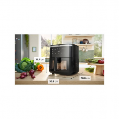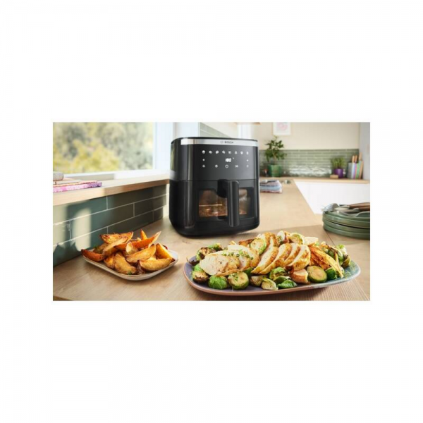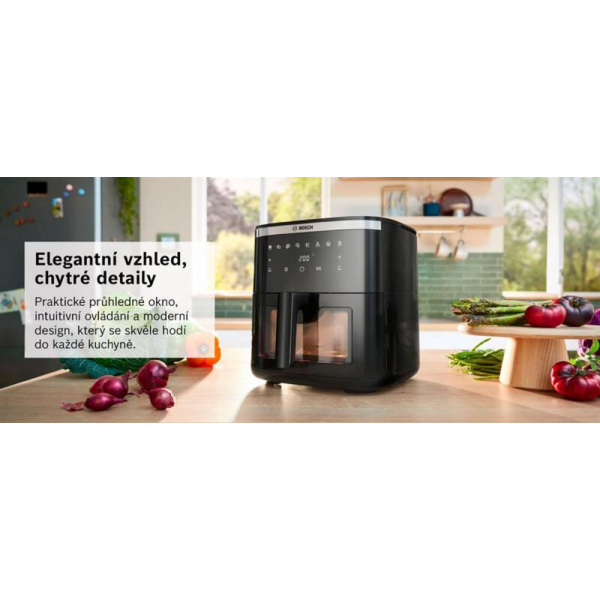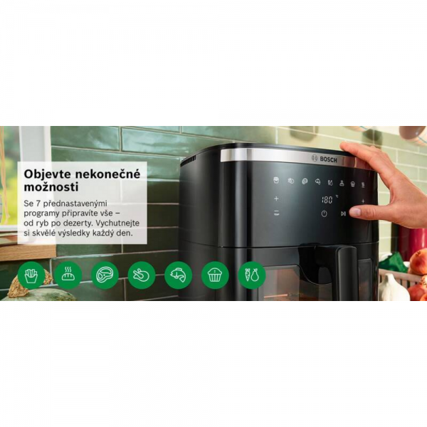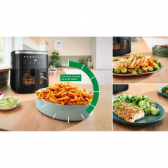 Teplovzdušná fritéza Bosch Serie 6 MAF671B0 prináša moderný spôsob prípravy obľúbených jedál rýchlejšie, zdravšie a pohodlnejšie. Vďaka veľkému objemu 7,2 litra pripravíte pokrmy pre celú rodinu alebo návštevu naraz. Intuitívne ovládanie, automatické programy a priehľadné okienko s osvetlením zabezpečia perfektnú kontrolu nad prípravou jedla. Ideálne riešenie pre každodenné varenie, zdravý životný štýl aj slávnostné príležitosti. Fritéza Bosch Serie 6 MAF671B0 kombinuje vysoký výkon, veľký objem a pokročilé funkcie pre maximálny komfort pri príprave jedla. S výkonom 1800 W a technológiou horúceho vzduchu pripravíte pokrmy rýchlo a s minimom oleja. Dotykové ovládanie, prednastavené programy a veľké priehľadné okienko zabezpečujú perfektnú kontrolu aj jednoduché používanie každý deň.