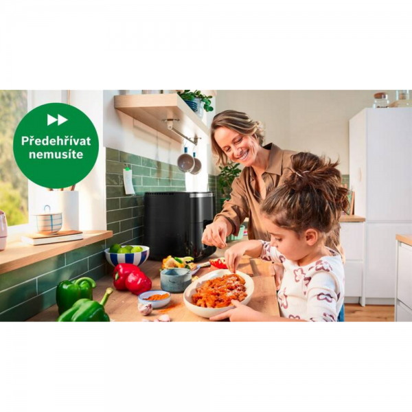 - Technológia horúceho vzduchu zabezpečuje rýchle dosiahnutie požadovanej teploty a až o 65 % rýchlejšiu prípravu jedla. Ušetríte čas pri každodennom varení aj príprave väčších porcií.