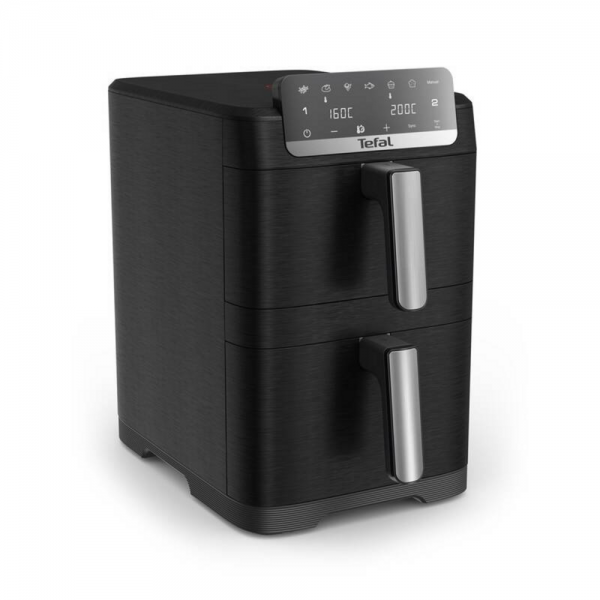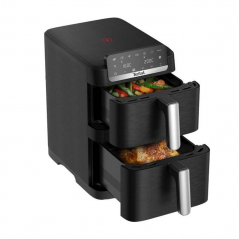 Tefal Easy Fry Crispy Stack prináša efektívne a priestorovo úsporné riešenie pre modernú kuchyňu. Vďaka dvom samostatným košom, vysokému výkonu a inteligentným funkciám umožňuje pripraviť kompletné menu naraz – rýchlo, rovnomerne a s minimom tuku.