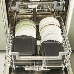 - Vyberateľné nádoby s nepriľnavým povrchom je možné jednoducho umývať aj v umývačke riadu.