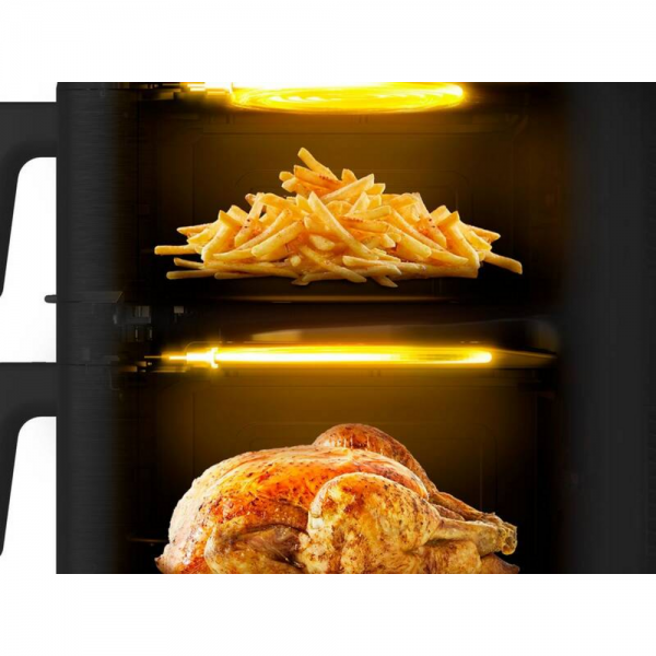 - Špeciálna technológia zabezpečuje cirkuláciu horúceho vzduchu pre rovnomerné a chrumkavé výsledky.