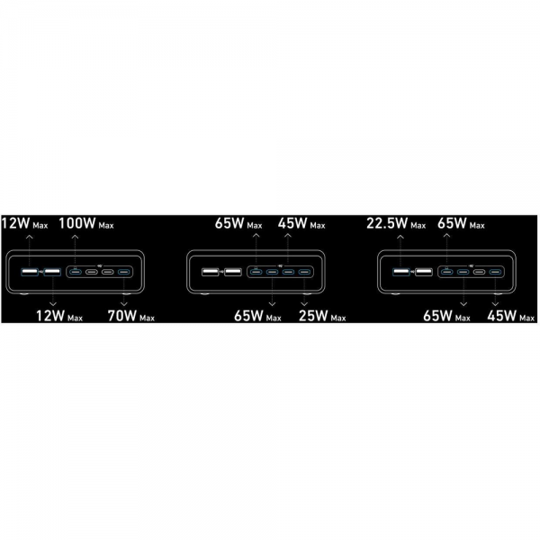 - Umožňuje efektívne nabíjať notebooky, telefóny aj príslušenstvo z jedného miesta.
