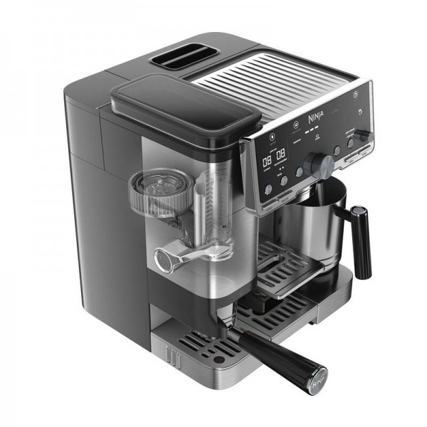Pákový kávovar Ninja 3v1 vám vykúzli lahodnú kávu, 4 druhy kávy, 7 veľkostí, 5 druhov napenenia, integrovaný mlynček, nastaviteľný držiak na kávu, rýchle a jednoduché čistenie kávovaru.
