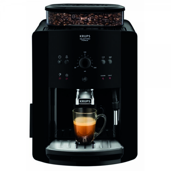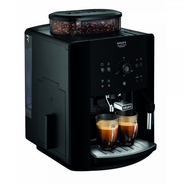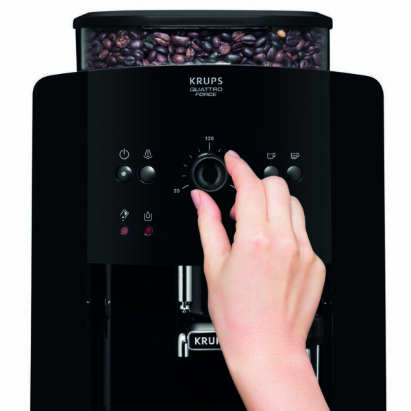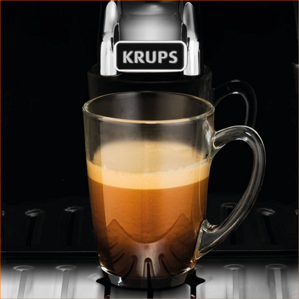 - Automatický kávovar Krups pripravuje kávu výhradne zo zrnkovej kávy, čím zachováva jej čerstvú arómu a plnú chuť.