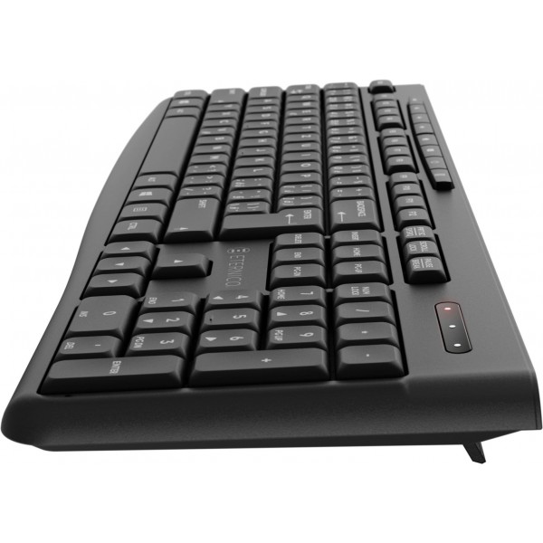 Súprava bezdrôtovej klávesnice a myši, nízkoprofilové klávesy, pripojenie 2,4 GHz, voliteľné DPI 800 - 1600, batérie AA a AAA, obsahuje cz/sk klávesy.