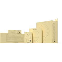 - Klávesnica aj myš sú napájané batériami AA a AAA