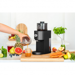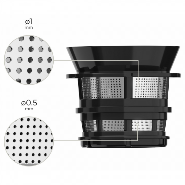 - Niektoré časti je možné umývať v umývačke riadu a jednotlivé diely sa dajú jednoducho rozobrať, čo výrazne urýchľuje údržbu po dokončení práce. Nerezové sitko navyše prispieva k efektívnemu získaniu šťavy a jednoduchému čisteniu.