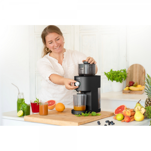 - Prístroj je vhodný na jablká, hrušky, citrusy, exotické ovocie, bobule aj rôzne druhy zeleniny. Univerzálne využitie z neho robí praktickú voľbu na pestrú prípravu domácich štiav.
