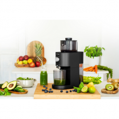 - Šnekový systém s rýchlosťou 60 otáčok za minútu pomáha šetrne extrahovať šťavu bez zbytočného zahrievania surovín. Vďaka tomu si nápoj zachováva prirodzenú chuť aj vyšší podiel cenných látok.