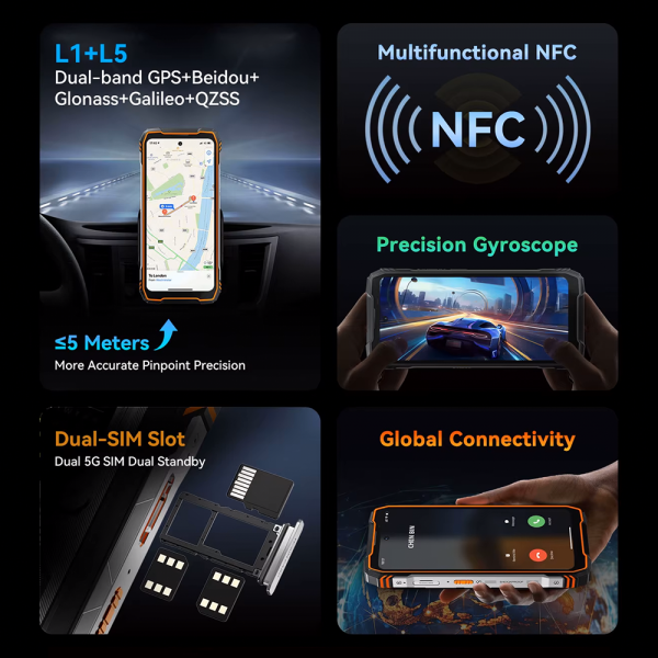 - Blackview Xplore 1 podporuje štvorpásmovú navigáciu cez systémy GPS, Beidou, Glonass a Galileo, takže poskytuje presné určenie polohy aj v náročnom teréne. Súčasťou softvérovej výbavy je aj sada Digital Toolkit s funkciami, ako je digitálny kompas, barometer, uhlomer alebo hlukomer.