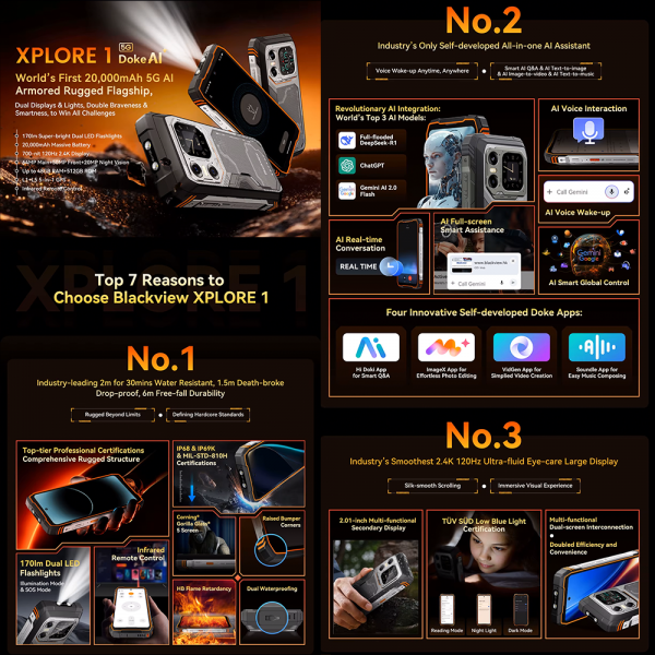 Blackview Xplore 1 je smartfón pre používateľov, ktorí chcú maximálnu odolnosť bez zbytočne robustného tela. Spája vysokú mechanickú aj environmentálnu odolnosť s modernou výbavou, ako je 5G konektivita, AMOLED displej a pokročilé navigačné technológie. Skvele sa hodí na turistiku, horolezectvo, dlhé prechody aj náročnú prácu v teréne.
