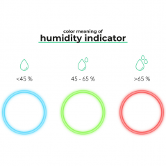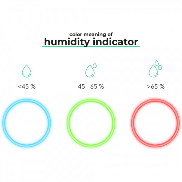 - Integrovaný indikátor umožňuje rýchlu kontrolu aktuálnej úrovne vlhkosti.