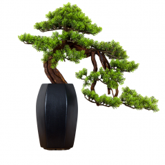 Dekorativní bonsaj je kombinací dlouholeté tradice s novodobým uspěchaným světem. Snoubí v sobě krásu a eleganci s netrpělivostí a nedostatkem času. Je designovým doplňkem pro všechny, kteří touží po této starobylé rostlině, ale dobře si uvědomují, že by na péči o ni neměli čas. Dekorativní bonsaj je vyrobena ze skutečného dřeva s listy ze stálobarevného plastu vyvedenými ve vysoce realistickém provedení. Květináč, ve kterém je bonsaj umístěna, je vyroben z kameniny pokryté glazurou. Bonsaj v misce doplňuje umělý mech. Péče o bonsaj je v tomto případě velmi snadná, nemusíte ji zalévat, ani zastřihovat a tvarovat. Jednou za čas ji stačí otřít či oprášit. Exkluzivní interiérový doplněk dodá vašim prostorám atmosféru poklidu a zdánlivý dotek přírody s nádechem exotické asie.