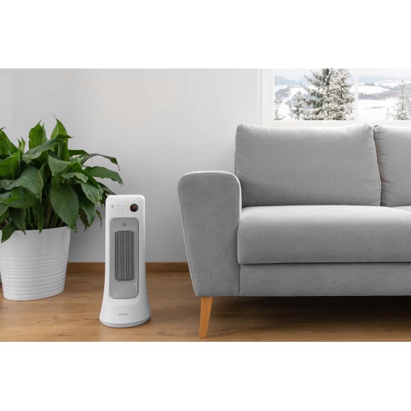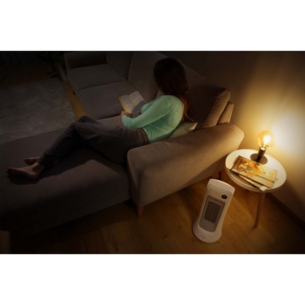 Keramický ohrievač s PTC vykurovacími článkami pre tiché a efektívne vykurovanie. 2 stupne výkonu. Diaľkové ovládanie. Funkcia oscilácie.