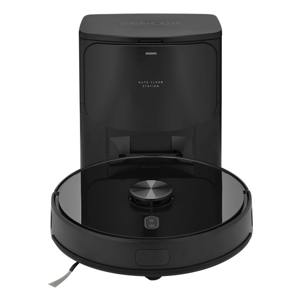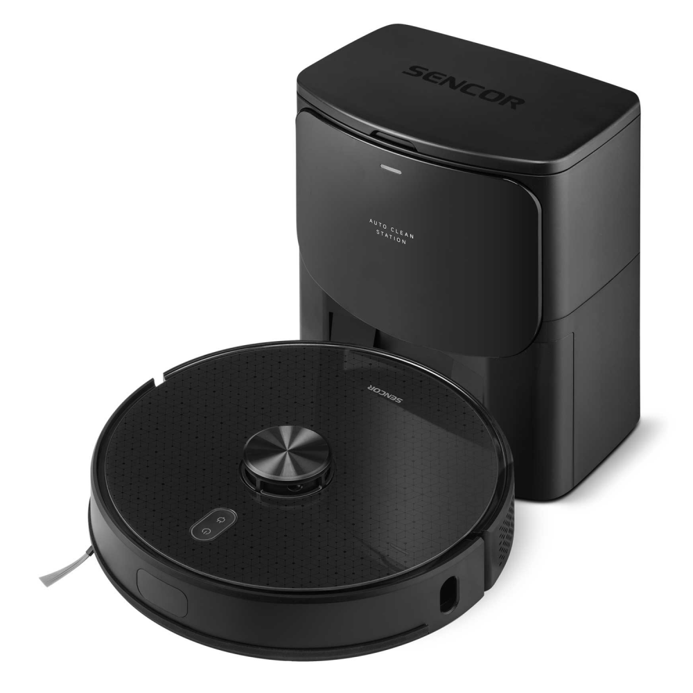 Robotický vysávač s funkciou mopovania Sencor SRV 9185BK. Precízna laserová, gyroskopická a LiDAR navigácia. Nabíjacia a zberná základňa s 3l vreckom.