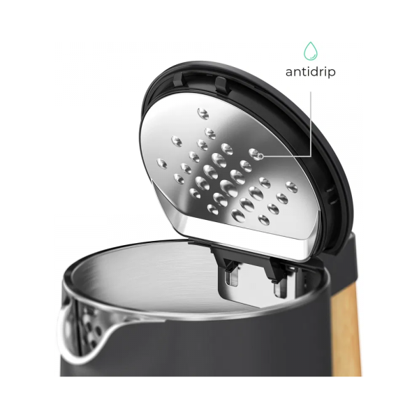 Dvojitý plášť z nehrdzavejúcej ocele 304 pomáha udržať povrch chladnejší (Cool Touch) a materiál nepohlcuje pachy ani chute. Skrytá vykurovacia špirála je umiestnená pod dnom pre jednoduchšiu údržbu. Antidrip veko odvádza skondenzovanú vodu späť do kanvice a je možné ho otvoriť až do uhla 85°.