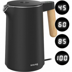 Siguro Mackay C750LY je rýchlovarná kanvica s objemom 1,5 l s možnosťou zvoliť cieľovú teplotu vody. Ponúka 7 prednastavených úrovní v rozsahu 45–100 °C (45, 60, 70, 85, 90, 95 a 100 °C), dvojplášťové vyhotovenie Cool Touch a britský konektor Strix testovaný na viac než 12 000 použití. Manipuláciu uľahčuje 360° otočná základňa s úložným priestorom na kábel.