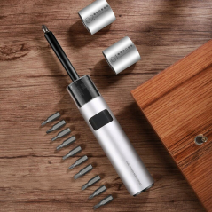 WOWSTICK SD63 je kompaktný elektricko-manuálny skrutkovač, ktorý kombinuje krútiaci moment 0,9 Nm v elektrickom režime a až 3 Nm pri ručnom dotiahnutí. Vďaka 1300 mAh Li-ion akumulátoru s nabíjaním cez USB-C vydrží na jedno nabitie až 180 dní v pohotovostnom režime alebo dve hodiny nepretržitej práce. Kovové telo je odolné a dobre sa drží. Súčasťou balenia je 36 bitov z ocele S2 (tvrdosť 60 HRC). 12 z nich si môžete presunúť do dvoch zásobníkov na tele skrutkovača. Oba zásobníky sú odnímateľné a je možné ich zložiť, alebo skrutkovať s nimi. Ak ich zložíte, prisvieti vám integrované LED osvetlenie, ktoré sa automaticky zapne, keď začnete skrutkovať. Skrutkovanie prebieha jednou rýchlosťou a môžete si zvoliť smer otáčania. Praktická sada obsahuje základný výber často používaných bitov v domácnostiach. Bez problémov by ste tak mali zvládnuť montáž aj údržbu domácej elektroniky, nábytku či svietidiel.