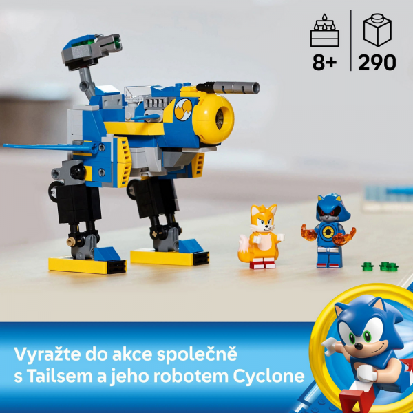 - Set vychádza z hernej predlohy Ježek Sonic a prináša súboj medzi Tailsovým strojom Cyclone a Metal Sonicom. Deti si môžu prehrať známe scény alebo vytvárať vlastné príbehy.