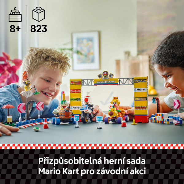 - Stavebnica prináša pretekársku atmosféru inšpirovanú populárnou sériou Mario Kart.
