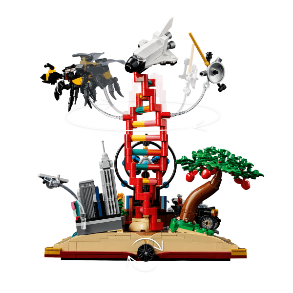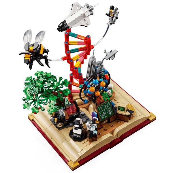 Tento model z radu LEGO Ideas vás prevedie kľúčovými momentmi vývoja odborov STEM (veda, technológie, inžinierstvo a matematika). Základom je otvorená kniha z kociek, ktorá ukrýva detailne prepracované mini modely historických vynálezov a objavov.