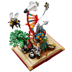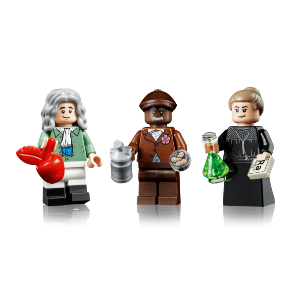 - Súčasťou stavebnice sú aj minifigúrky Marie Curie – dvojnásobná držiteľka Nobelovej ceny, Isaac Newton – autor gravitačného zákona, George Washington Carver – priekopník poľnohospodárskej vedy.