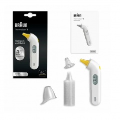 Tento bezkontaktný digitálny ušný teplomer BRAUN ThermoScan 3 IRT3030WE je spoľahlivý a jednoducho použiteľný ušný teplomer, vhodný pre deti aj dospelých. Tento teplomer zmeria teplotu už za 1 sekundu a vďaka infračervenej technológii poskytne presný a okamžite čitateľný výsledok. Teplomer vyhodnocuje teplotu pomocou jasnej zvukovej signalizácie – jeden tón znamená normálnu teplotu, dva zvýšenú a štyri horúčku. Na prehľadnom LCD displeji jednoducho odčítate údaje v stupňoch Celzia (34–42,2 °C) alebo Fahrenheita, a vďaka pamäti posledného merania máte výsledky vždy pod kontrolou. Je bezpečný aj pre novorodencov. Automatické vypnutie po 60 sekundách šetrí batériu a jednorazové kryty (21 ks) zabezpečujú hygienické použitie. Súčasťou balenia je ochranný kryt, batéria CR2032 a návod na obsluhu.