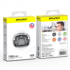 Awei T86 sú bezdrôtové Truewireless slúchadlá s nabíjacím úložným puzdrom. Disponujú elektronickým potlačením hluku (ENC) pri volaní. Automaticky zvýrazňujú váš hlas a potláčajú ruchy okolia, aby vás druhá strana dobre počula. Slúchadlá vydržia prehrávať hudbu až 6 hodín a môžete s nimi volať až 7 hodín v kuse. Spoločne s puzdrom vydržia až 20 hodín. Po prvom spárovaní sa následne automaticky pripájajú k telefónu. Môžete počúvať len jedno slúchadlo alebo obe. Slúchadlá majú špeciálny herný režim pre hranie hier a e-športy. 10 mm meniče zabezpečia kvalitné podanie zvuku s hlbokými čistými basmi a jasnými výškami, vrátane prirodzeného vykreslenia stereo zvuku a redukcie akustickej rezonancie. Slúchadlá sú schopné komunikovať aj s hlasovým asistentom.