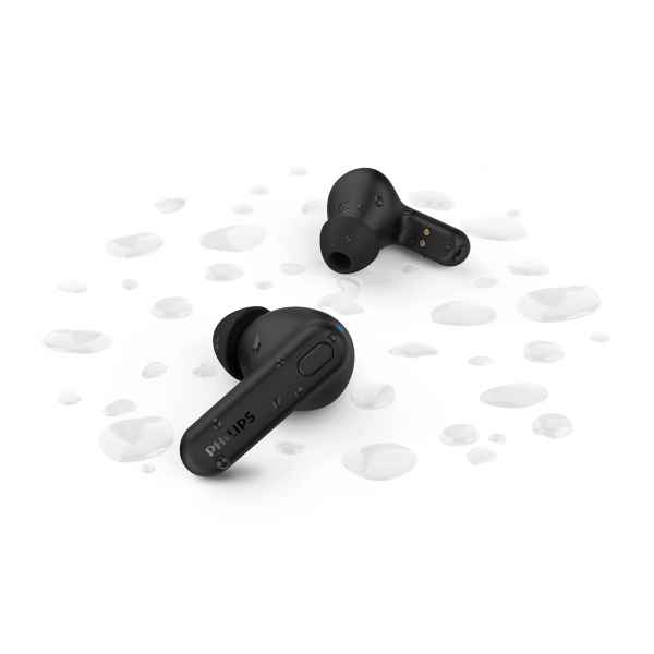 Philips TAT1108BK/00 true wireless bezdrôtové slúchadlá s Bluetooth 5.3, výdržou až 5 h na jedno nabitie (celkovo až 15 h s puzdrom), nabíjaním cez USB-C a odolnosťou IPX4. Integrovaný mikrofón, dotykové ovládanie.