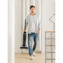 Vysávač má dve veľké nádržky. Jedna je na čistú vodu s objemom 0,8 l a druhá na odpadovú vodu a nečistoty s objemom 0,72 l. Nebudete ich teda musieť často dopĺňať ani vyprázdňovať. Mopovací valec sa postará o efektívne umytie aj odolných alebo zaschnutých škvŕn a po vložení vysávača do dokovacej stanice sa sám vyčistí.