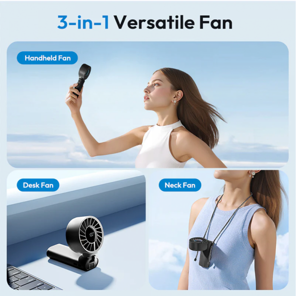 - 3 režimy - zavesený na krku, stolné chladenie, držaný v ruke na cestách