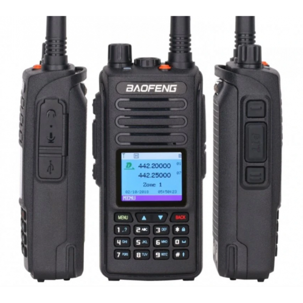 Dvojpásmová ručná vysielačka pre amatérske, ale aj profesionálne využitie. Táto DMR rádiostanica je kompatibilná s Tier I/II. Možno ju používať v analógovom aj digitálnom režime. Veľký podsvietený displej zobrazuje všetky údaje a vďaka funkcii písania správ na ňom prehľadne vidíte text svojej správy. Robustný kryt zabezpečuje dostatočnú odolnosť pre nepriaznivé podmienky. Vysielačka pracuje v pásmach UHF a VHF a obsiahne až 3000 kanálov. Disponuje štandardizovaným konektorom Kenwood na pripojenie headsetu, takže si ju môžete pripnúť na opasok a hovoriť do mikrofónu na slúchadlách. Nabíja sa pomocou Li-ion batérie s kapacitou 2200 mAh, ktorú znova dobijete v nabíjacej stanici. V prípade slabej batérie a potreby dobitia informuje indikačná ikona na LCD displeji.