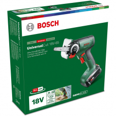 Akumulátorová mini reťazová píla Bosch UniversalCut 18V-65 s Li-Ion batériou 18 V / 2,5 Ah ponúka nízku hmotnosť 1 kg, antivibračný systém a jednoduchú manipuláciu. Súčasťou balenia je akumulátor aj nabíjačka, ideálne riešenie pre rýchle a presné rezy.